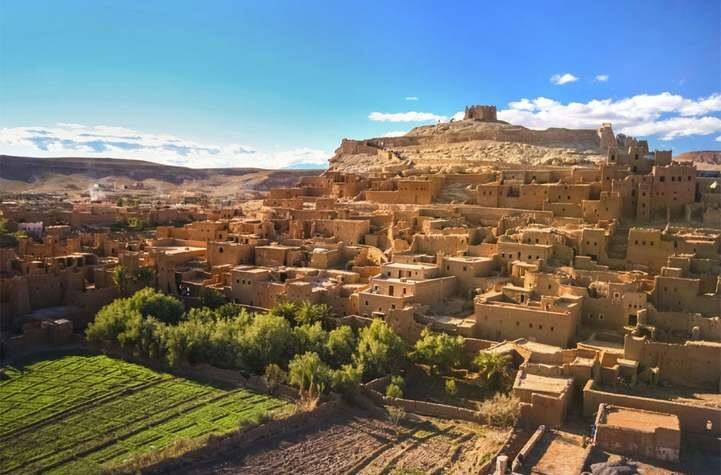 Atravesaremos el Alto Atlas por el puerto de Tichka (el paso de carretera más alto de África). Llegaremos al ksar fortificado de Ait Ben Haddou, el mejor conservado en Marruecos.